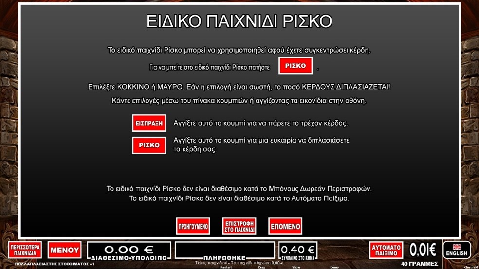 Το ειδικό παιχνίδι ΡΙΣΚΟ μπορεί να χρησιμοποιηθεί αφού έχετε συγκεντρώσει κέρδη.