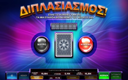 Πατώντας το πλήκτρο διπλασιασμού εμφανίζεται μια νέα οθόνη, όπου ο παίκτης μπορεί να επιλέξει ανάμεσα σε μια κόκκινη ή μια μαύρη κάρτα. Όταν ο παίκτης επιλέξει ένα από τα χρώματα, το παιχνίδι του διπλασιασμού αποκαλύπτει μια κάρτα και δείχνει το αποτέλεσμα του γύρου του παιχνιδιού. Αν αυτή η κάρτα έχει το χρώμα που επιλέχθηκε, το κέρδος διπλασιάζεται. Αν όμως η κάρτα δεν έχει το χρώμα που επιλέχθηκε, το συνολικό κέρδος χάνεται. Η πιθανότητα κέρδους είναι 50%.