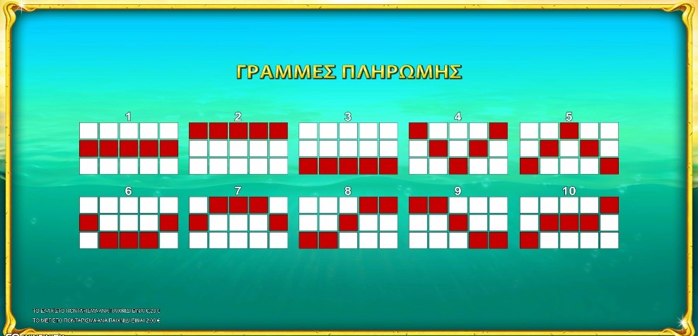 Στον πίνακα πληρωμών παρακάτω εμφανίζονται οι αποδόσεις των συμβόλων ανά γραμμή
