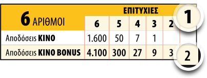 • 54 combinations if you don’t match ΚΙΝΟ ΒΟΝUS number