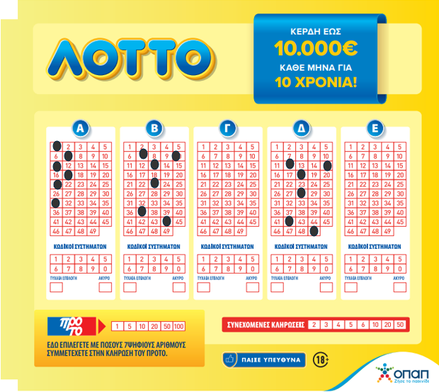 There is also the option to participate in PROTO (with up to 186 consecutive numbers), by marking the area at the bottom of a LOTTO slip.