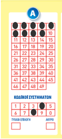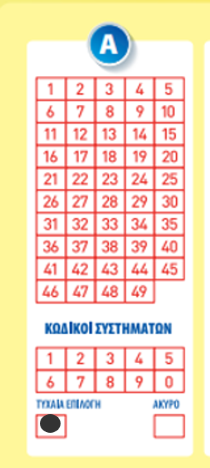 Α. By selecting only “Random Selection” without selecting the numbers, the terminal will generate a simple column with the random selection of 6 numbers, from 1 to 49.