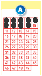 - Different numbers from the total of 49 numbers should be filled in each area of the slip.