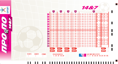 Select 1 symbol (1, 2 or X) for each of the 14 or 7 matches. The cost is 0,25€.