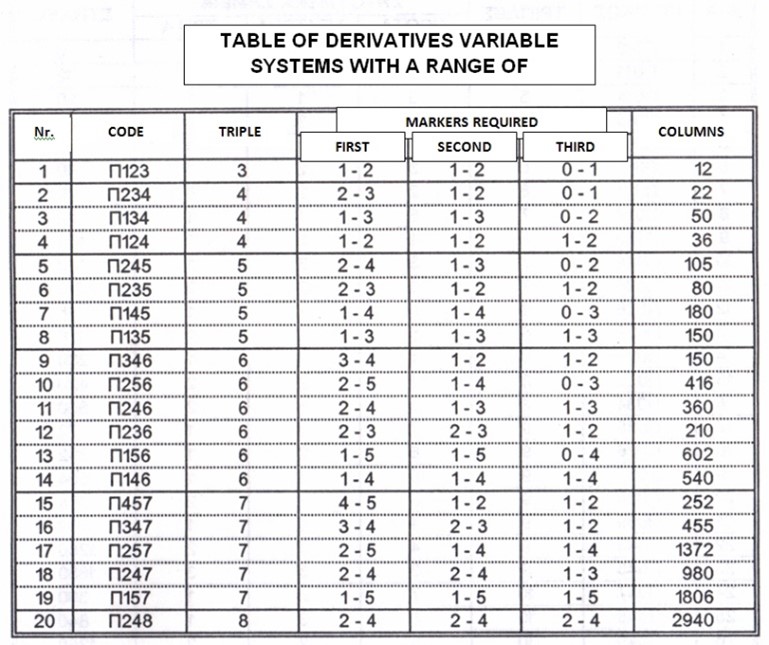 2. Basic Column Variable Systems: systems' conditions refer only to the 1st markers selected and are divided into a specific number or a range of errors covered.