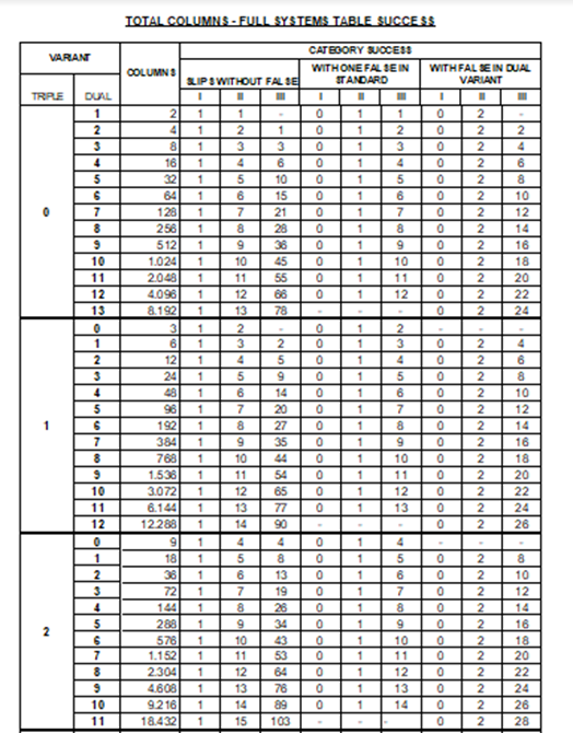 There are 120 Variable Standard Systems (played in slip area 5) which offer the ability to participate in the game with fewer columns & lower cost, compared to those needed for the full system.