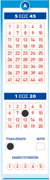 The System Game can boost your winning odds with an increase in number combinations. The standard systems apply only on the 5 out of 45 area. Sets of fives are created, which are then combined with ΤZOKER numbers you have selected in the 20-number field.
